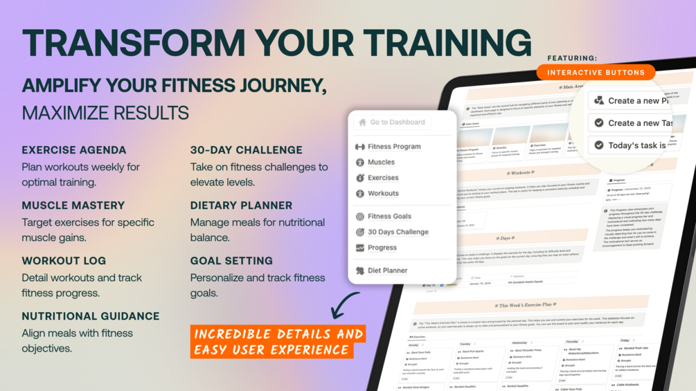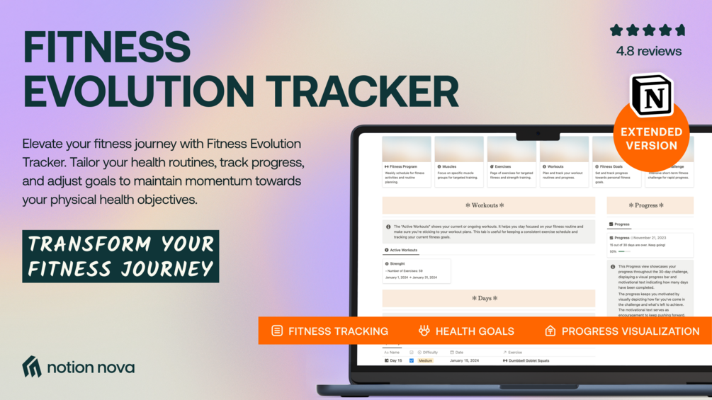- Tailored Fitness Management: Specifically designed for personal health and fitness tracking within the Notion platform.